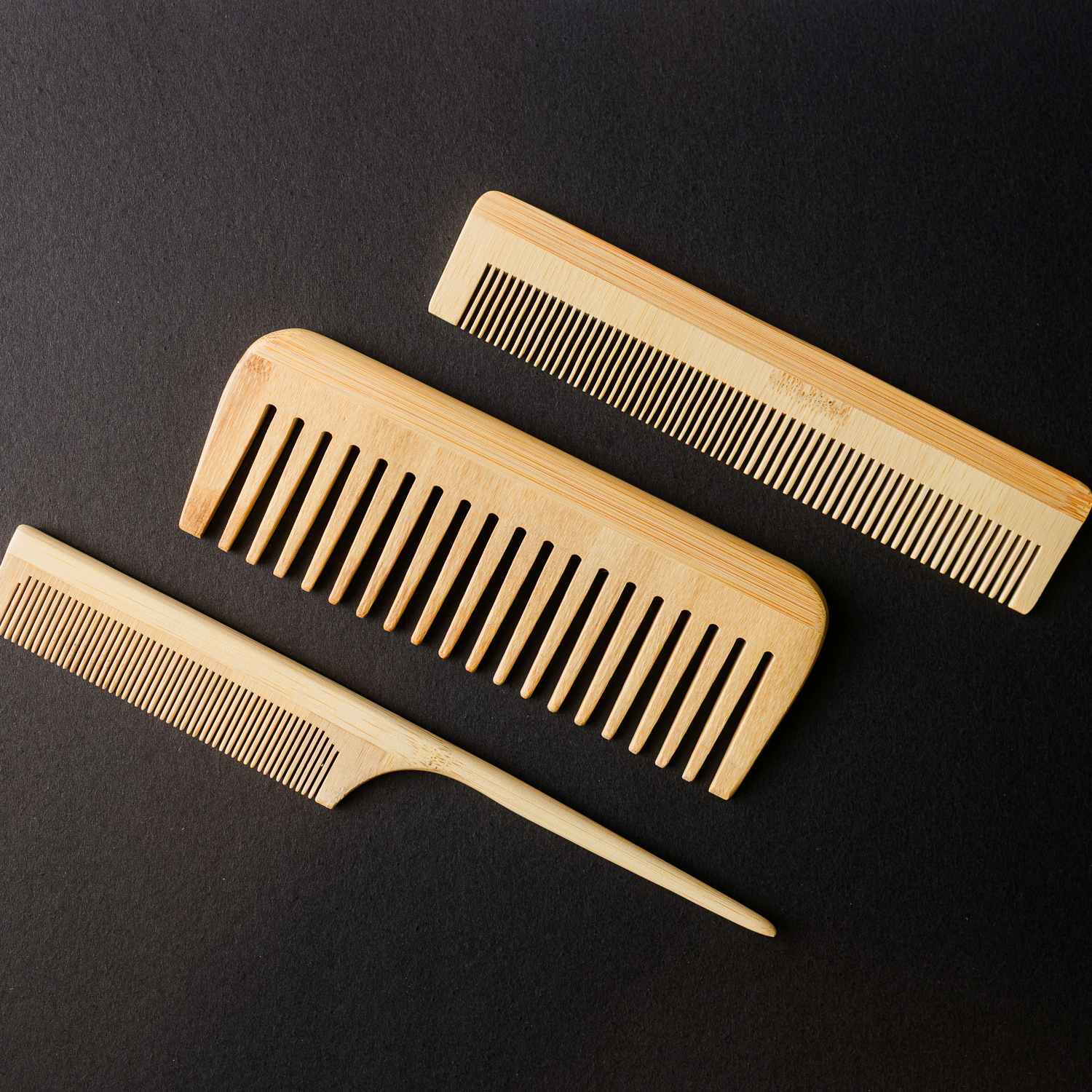 This 3-piece Handmade Bamboo Hair Comb Set is the perfect addition to your haircare routine. Designed for both men and women, the set includes wide and fine-toothed combs ideal for detangling, styling, and heat resistance. Made entirely from 100% bamboo, these combs are gentle on your hair, unlike plastic alternatives, preventing damage and breakage. Whether you have long, short, thick, thin, wavy, or curly hair, this set helps smooth and shine your hair while reducing tangles for a sleek, healthy finish. Sustainable, durable, and effective - your hair will thank you.