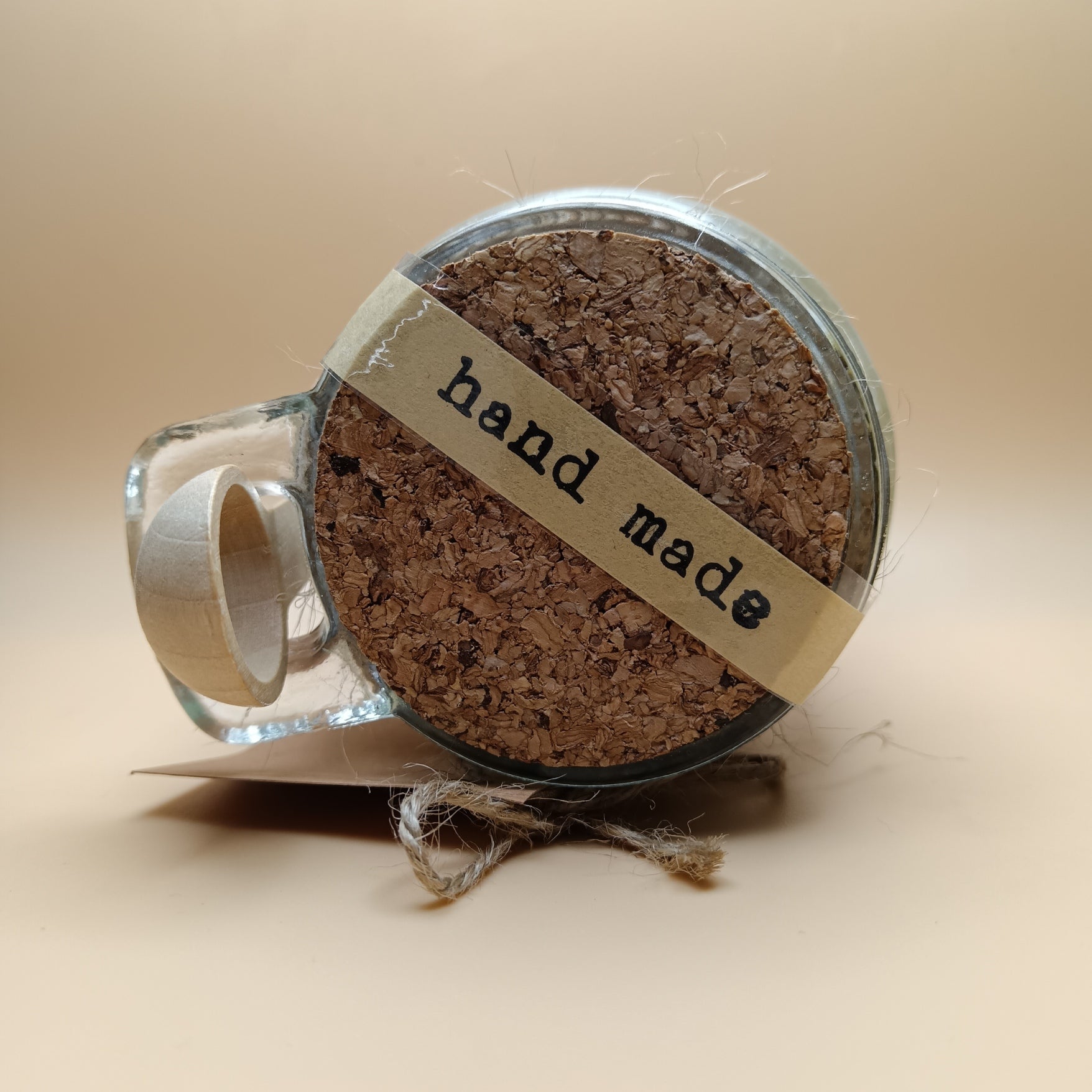 Packaging: Glass Jar with Cork Lid and wooden spoon.