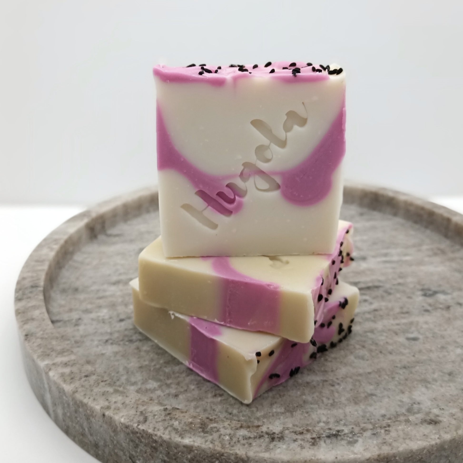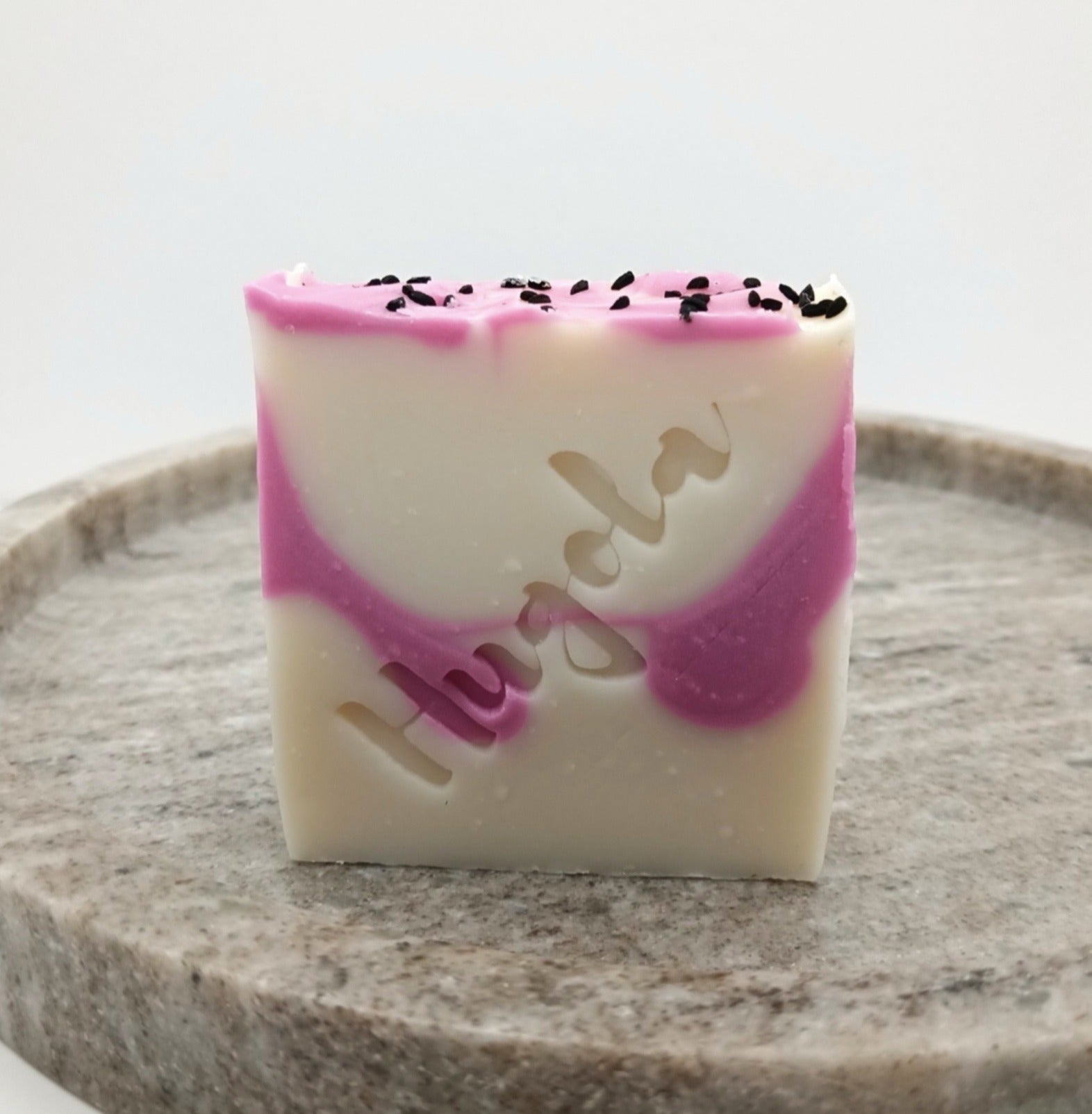 Decorative black cumin seeds add a natural, earthy touch, while the sophisticated, spicy-floral fragrance soothes the senses like a serene spa ritual. A subtle pink shimmer brings a hint of elegance to every cleanse.
