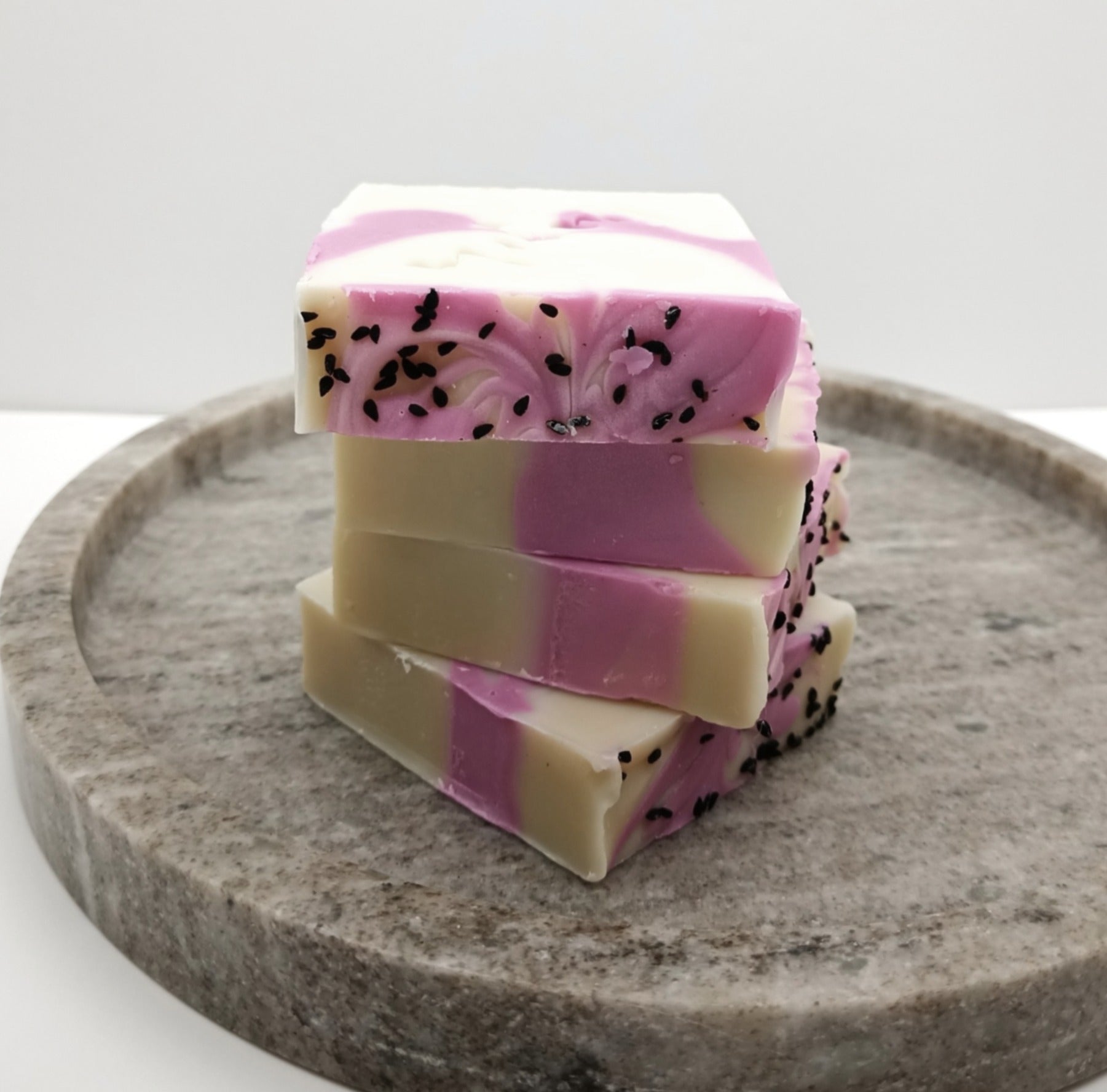 Immerse yourself in a moment of pure calm with Nigella Serenity — a luxurious handcrafted soap enriched with antioxidant-rich black cumin seed oil. This nourishing bar blends moisturizing olive oil and shea butter with gentle coconut and castor oils for a rich, creamy lather that leaves your skin soft and hydrated.