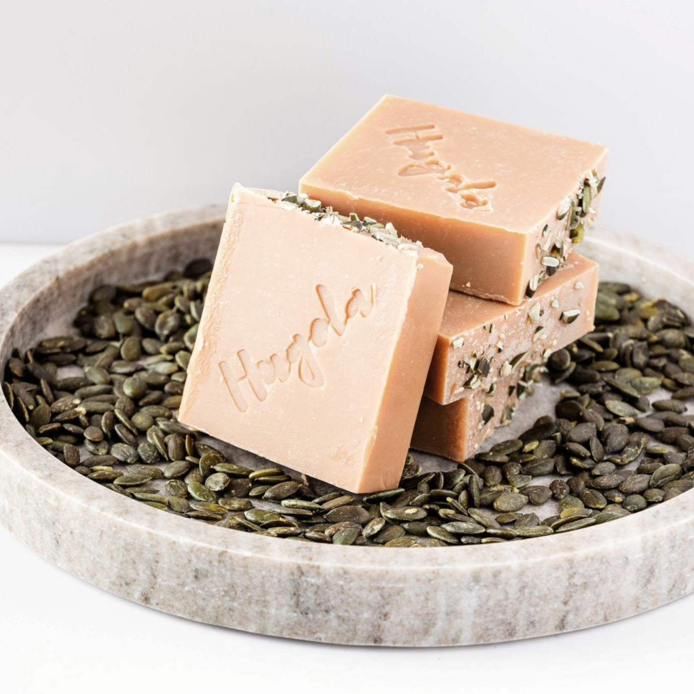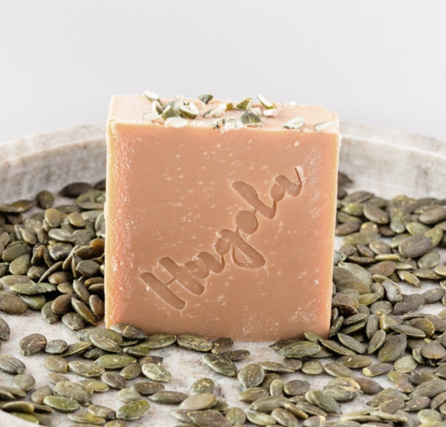 Nourish your skin with the calming combination of babassu oil, cocoa butter, sweet almond oil, pumpkin seed oil, and castor oil. This soap is enriched with crushed pumpkin seeds for a mild exfoliating effect and orange clay to brighten and revitalize your complexion. It’s an excellent choice for skin that seeks extra care and hydration, helping to smooth skin's appearance and support a firmer, more refreshed look.