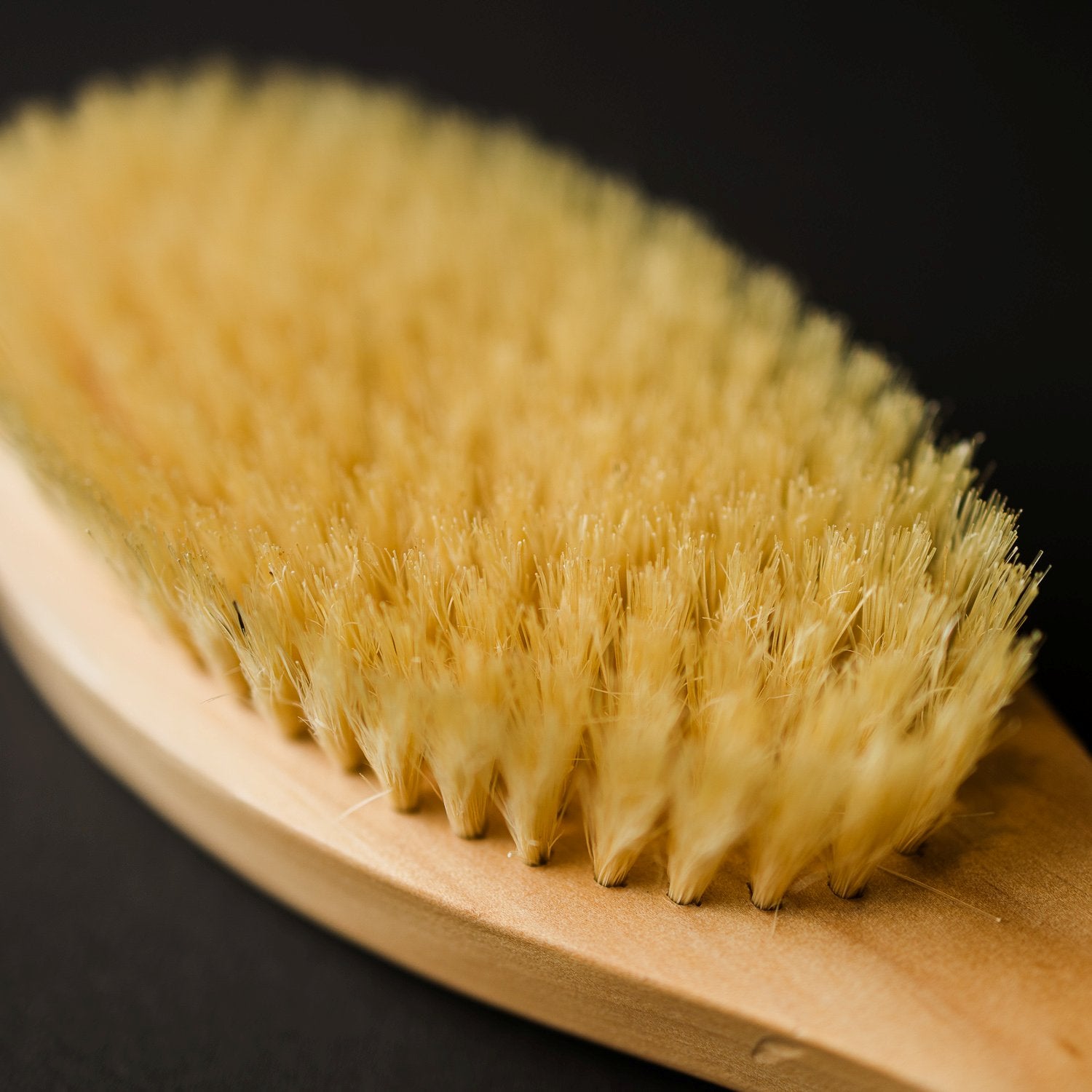 Crafted from natural wood, this long-handle bath brush is your go-to for effective full-body exfoliation. The firm bristles provide a satisfying scrub - whether used wet or dry - helping to remove dead skin cells, boost circulation, and leave skin feeling refreshed and smooth. Its extended handle makes it easy to reach your back and other tricky spots, while the anti-slip grip ensures control and comfort in the shower. A beautiful blend of function and rustic charm, it’s a timeless addition to any self-care routine.