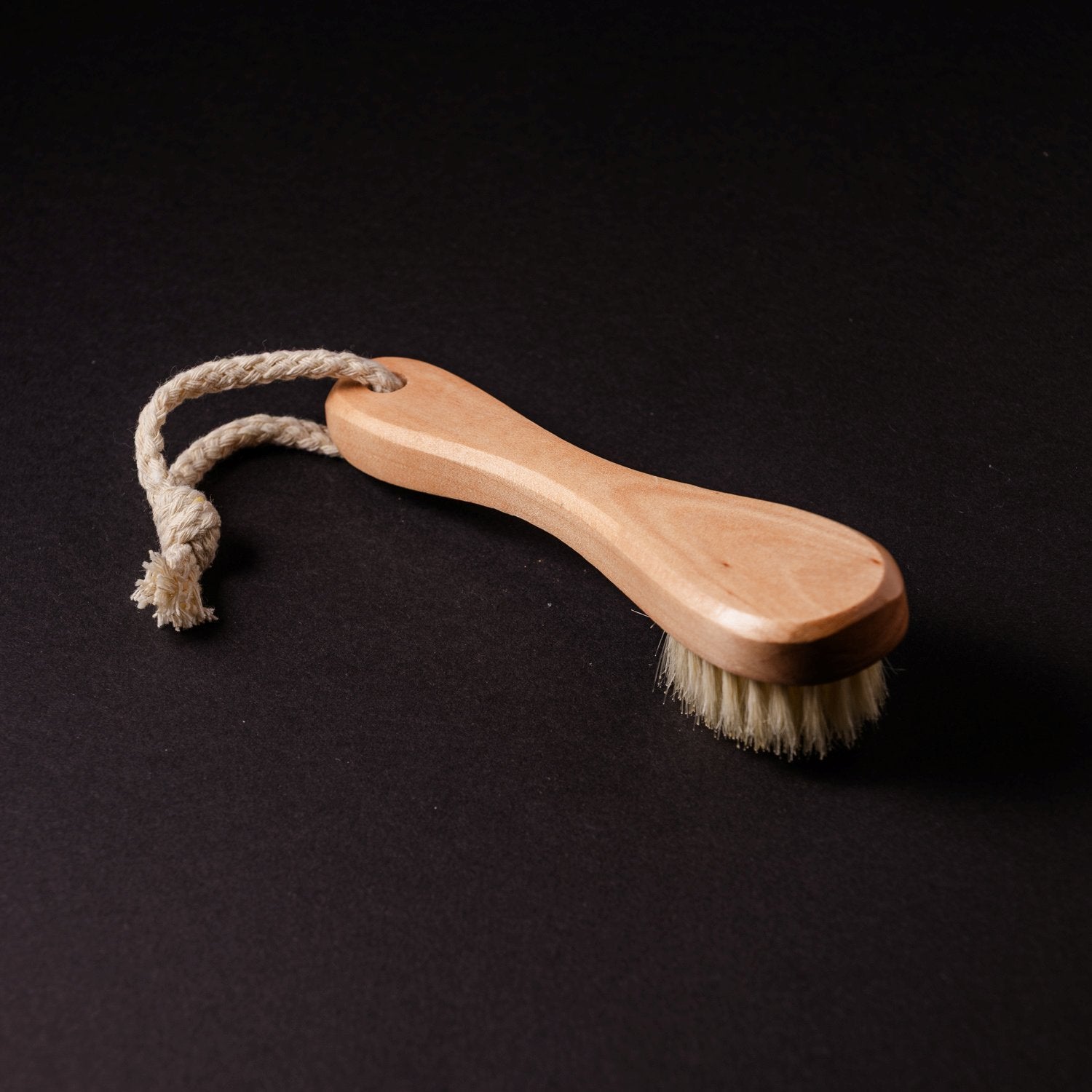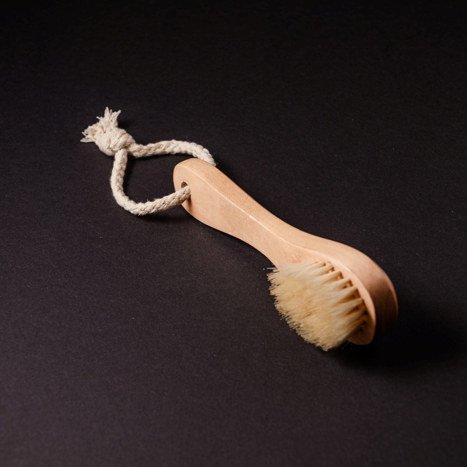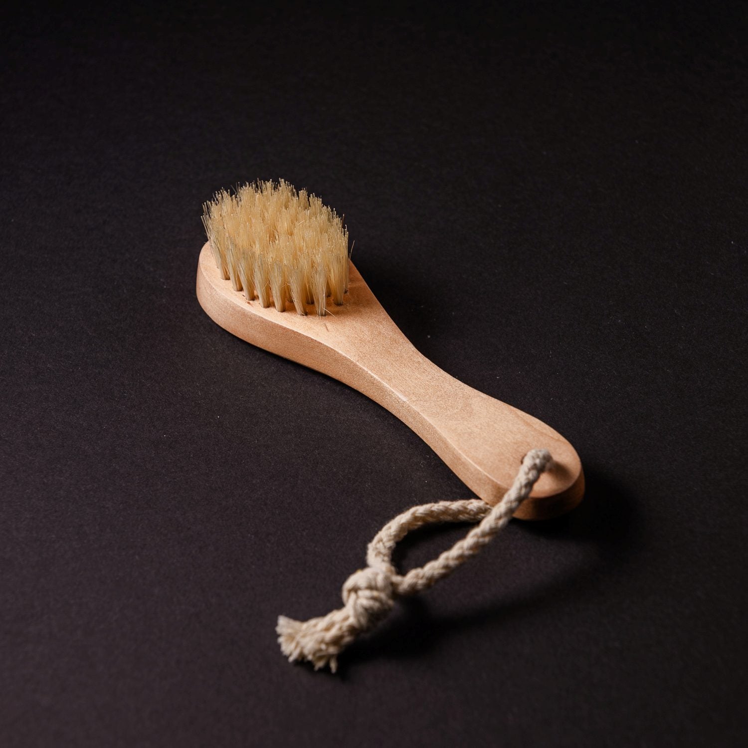 Gently exfoliate and revitalise your skin with this classic-style facial brush, crafted with natural bristles and a smooth wooden handle. Designed for both dry and wet brushing, it helps to remove dead skin cells, boost circulation and promote a healthy, radiant glow. Compact and easy to use, it’s a simple yet effective way to elevate your skincare routine with a natural touch.