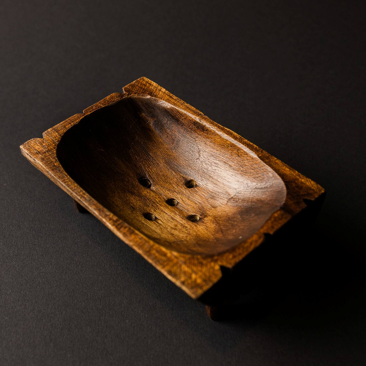 Crafted from solid teak wood, this generously sized soap dish brings a raw, earthy elegance to your bathroom. Designed to resemble a natural piece of wood, it stands on small wooden legs and features discreet drainage holes to keep your soap dry and lasting longer.