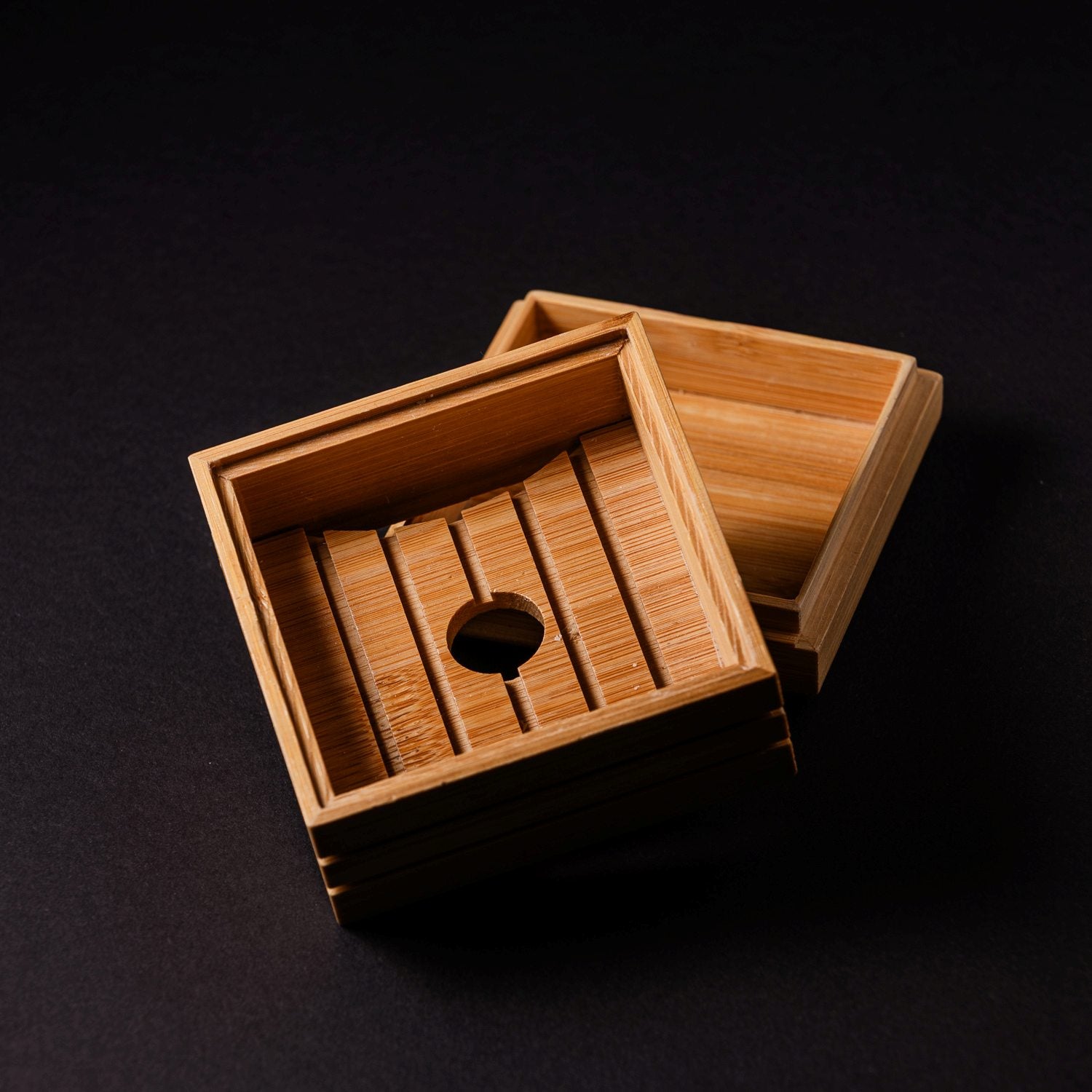 A clean, elegant solution for storing your favourite soap. This square bamboo soap box, inspired by Scandinavian simplicity, is crafted from natural, sustainable wood and features a removable lid for a sleek, clutter-free look. The self-draining insert keeps your soap dry and fresh, while the box design makes it ideal for travel, gifting, or neatly storing your soap between uses. A practical and stylish touch for any modern, eco-conscious home.